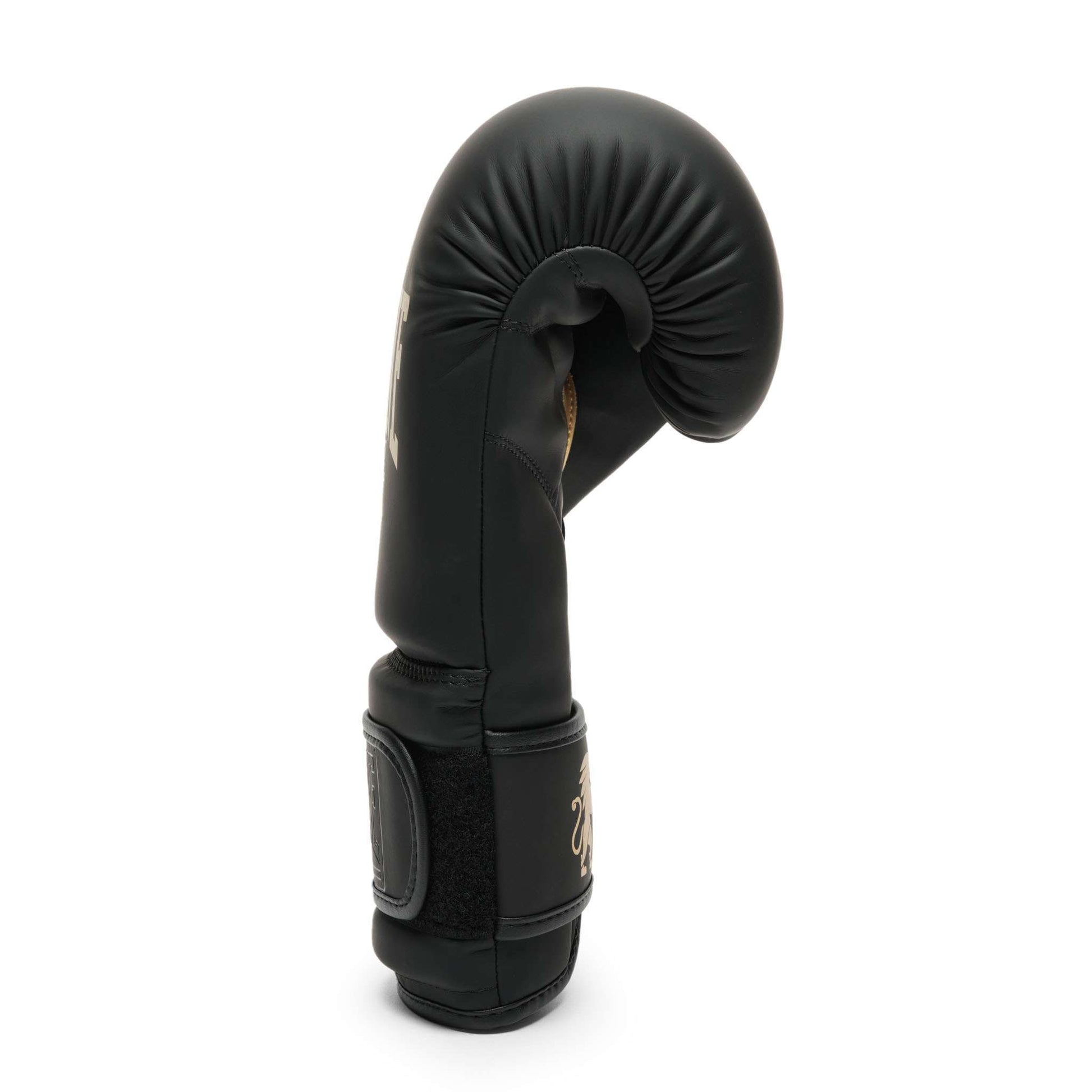 Die Leone Boxhandschuhe GN059 Black & Gold Edition sind aus hochwertigem Kunstleder gefertigt, das sich durch ein edles mattes Finish und stilvolle goldene Details auszeichnet. Am oberen Teil der Manschette sorgt eine zusätzliche Polsterung für idealen Schutz und Stabilität des Handgelenks.